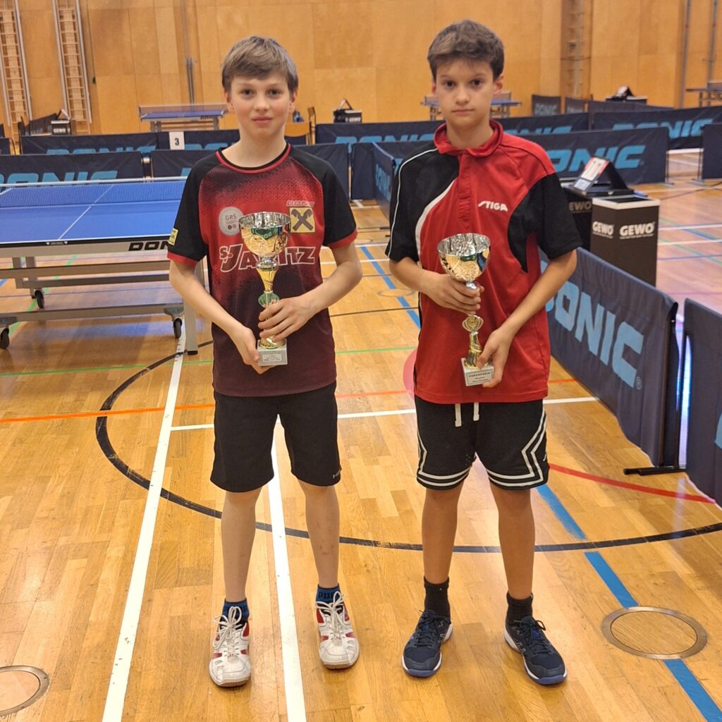 Wesentlich besser lief es im Doppel U15 mit Partner Niklas Deutsch vom TTC Gratwein-Straßengel. Als Nummer 3 gesetzt kämpften sich die zwei Burschen ihrer Setzung entsprechend ins Halbfinale, wo sie gegen die zweitgesetzte Paarung von ATSE Graz nach Satzrückstand einen klaren 3:1 Sieg feiern konnten. Das Finalmatch gegen das Nummer-1-Doppel des Turniers von USV Indigo Graz wurde mit knappen Satzentscheidungen zur Nervenschlacht, wobei Artur Zechner und Niklas Deutsch jeweils die Oberhand behielten und mit einem klaren 3:0 Satzerfolg den Titel errangen. Herzliche Gratulation zum Steirischen Meistertitel U15!